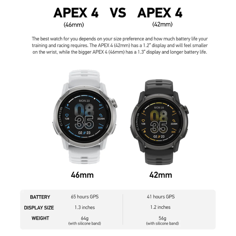 COROS Apex 4 е висок клас мултиспорт часовник, създаден за приключения и интензивни тренировки в разнообразни условия. Моделът съчетава здрава конструкция, прецизно GPS проследяване и разширени функции за анализ, което го прави подходящ както за професионални спортисти, така и за любители на планинските активности.